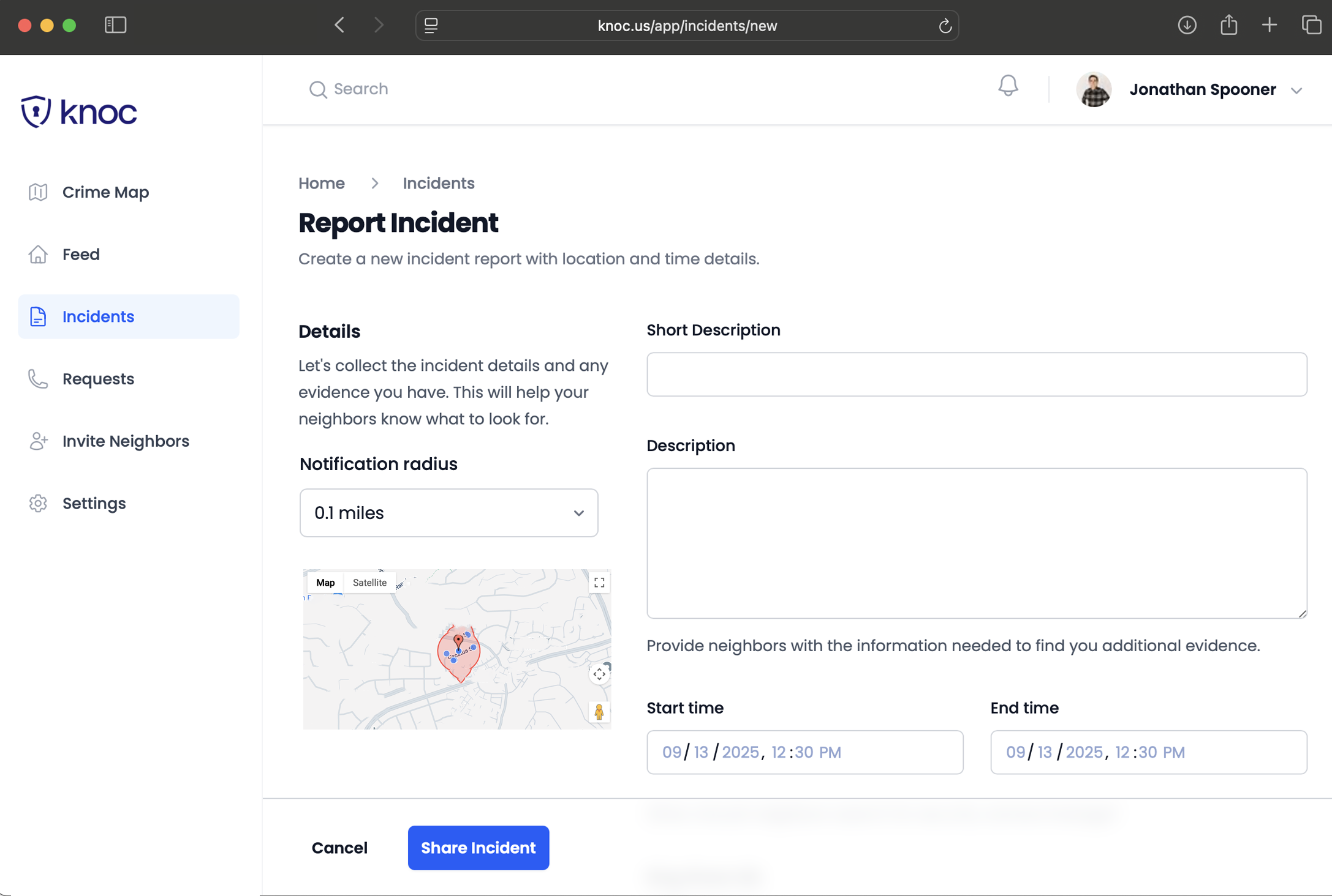 Knoc simplifies the process of requesting and sharing security footage with neighbors. By giving police fast access to relevant evidence, we cut down response times and boost the likelihood of solving cases quickly.